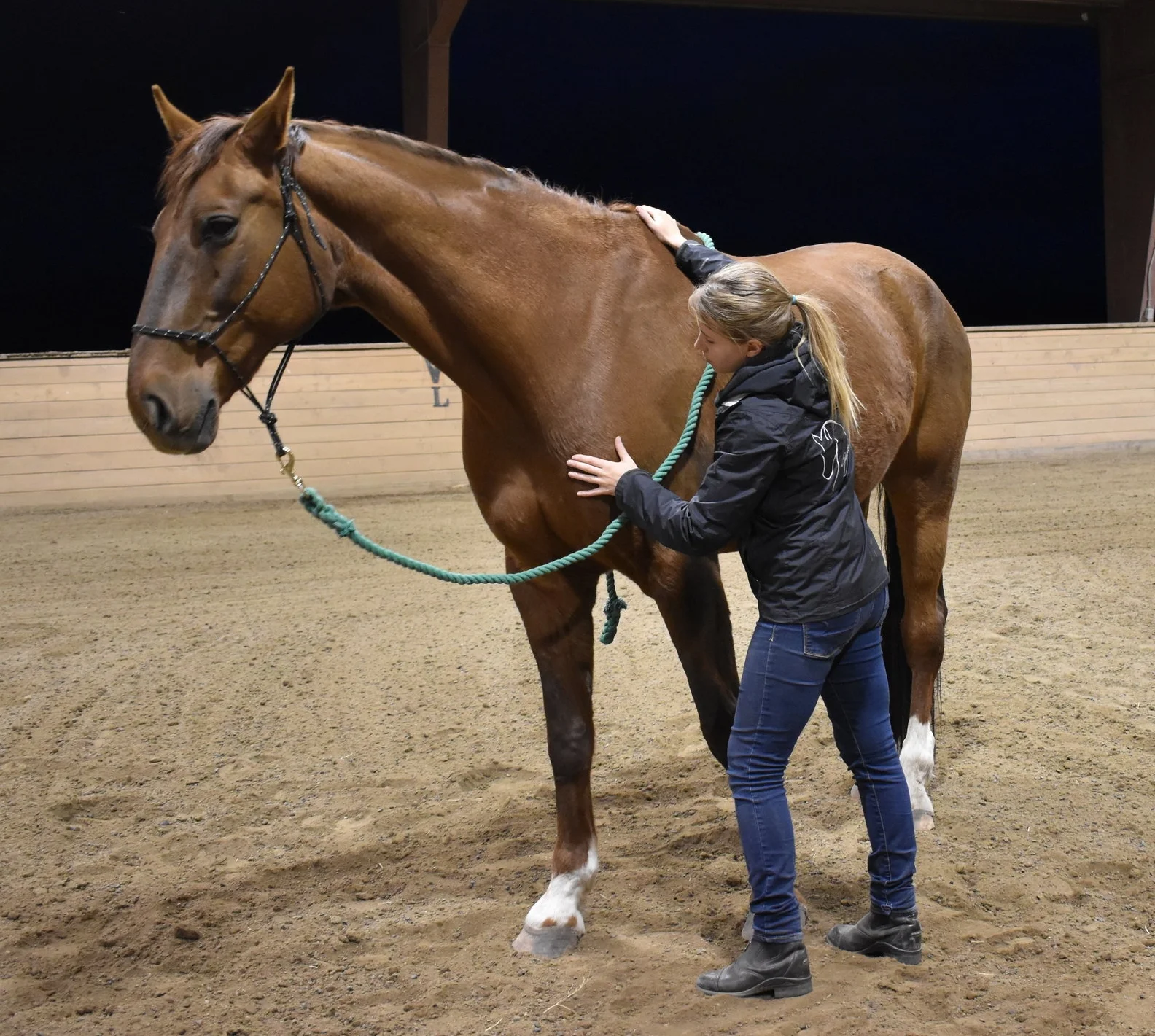 I like to leave “homework” for my clients to do with their horse. At the end of every bodywork session I’m happy to include some core exercises and stretches that can be done at home, in between sessions. A lack of core strength can wreak havoc on the equine back, creating underdeveloped topline muscles, or even leading to pathologies such as kissing spine, etc. A strong core provides valuable support to the precious vertebrae that we sit on top of! It is also beneficial to develop a quick, 5-10 minute stretching routine after each ride to relieve any tension or stiffness from your horse.